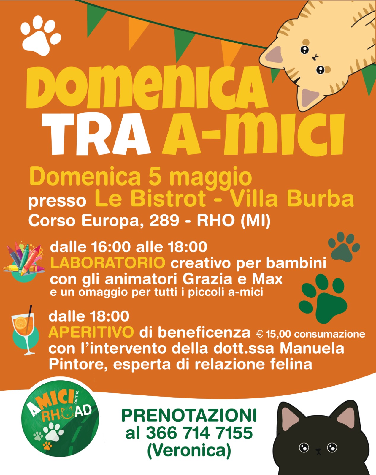 L'appuntamento prosegue con un esclusivo aperitivo da Bistrot Bar. Per soli 15,00€, i partecipanti potranno gustare prelibati stuzzichini e rinfrescanti drink in compagnia, contribuendo così alla causa solidale. Parte del ricavato sarà infatti destinato all'Associazione per supportare i tutori delle colonie feline di Rho. Il culmine dell'evento sarà un intervento speciale sulle colonie feline a cura di Manuela Pintore, rinomata esperta di relazione felina. Un'opportunità unica per conoscere meglio i nostri amici a quattro zampe, arricchita da preziosi consigli e curiosità per comprendere al meglio il mondo dei gatti.