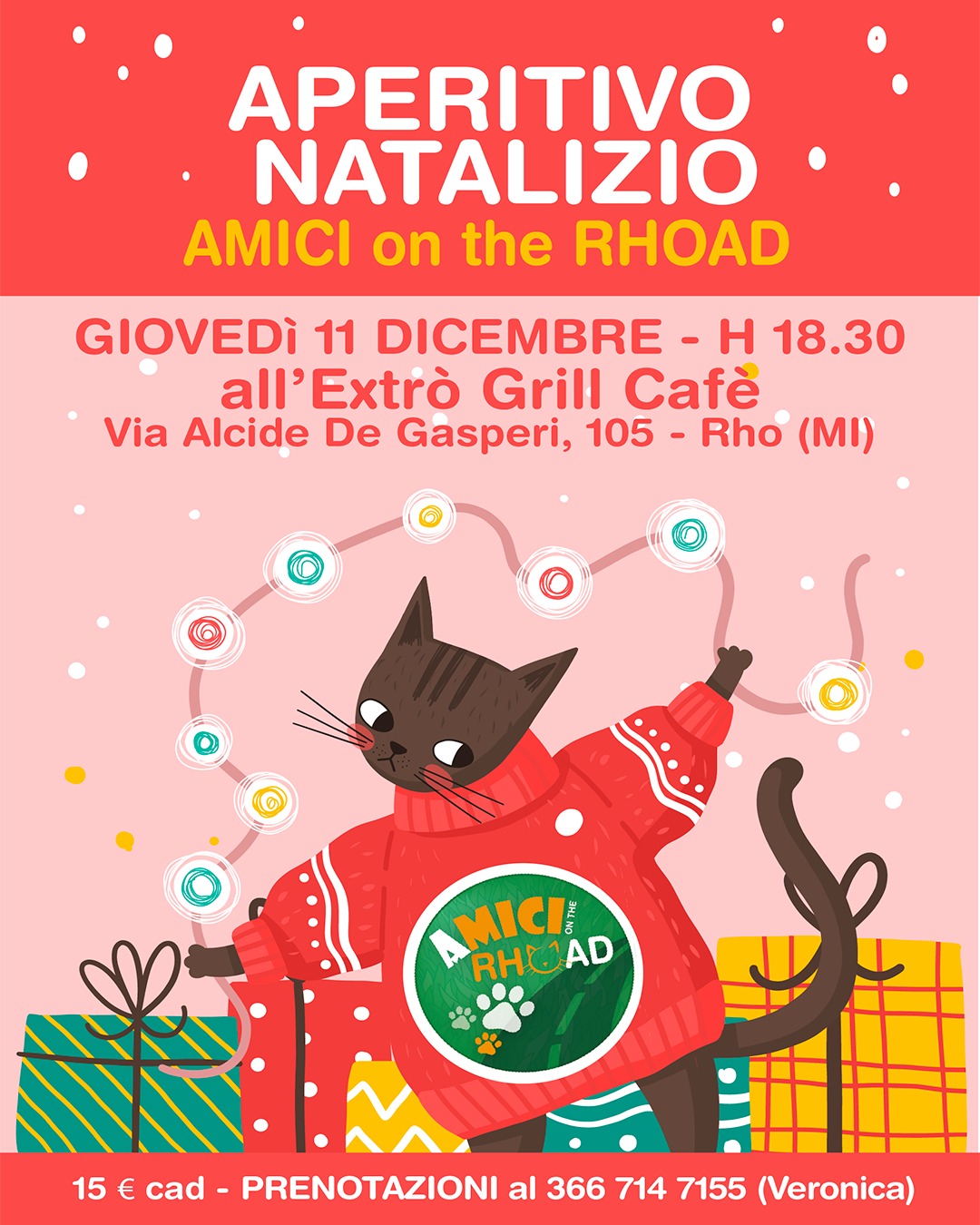 Amici on the Rhoad invita la cittadinanza all’Aperitivo di Natale, un momento di incontro e convivialità pensato per festeggiare insieme l’arrivo del periodo più magico dell’anno. L’iniziativa si svolgerà mercoledì 11 dicembre alle ore 18:30 presso Extrò, a Rho. La partecipazione prevede un contributo solidale di 15 euro.