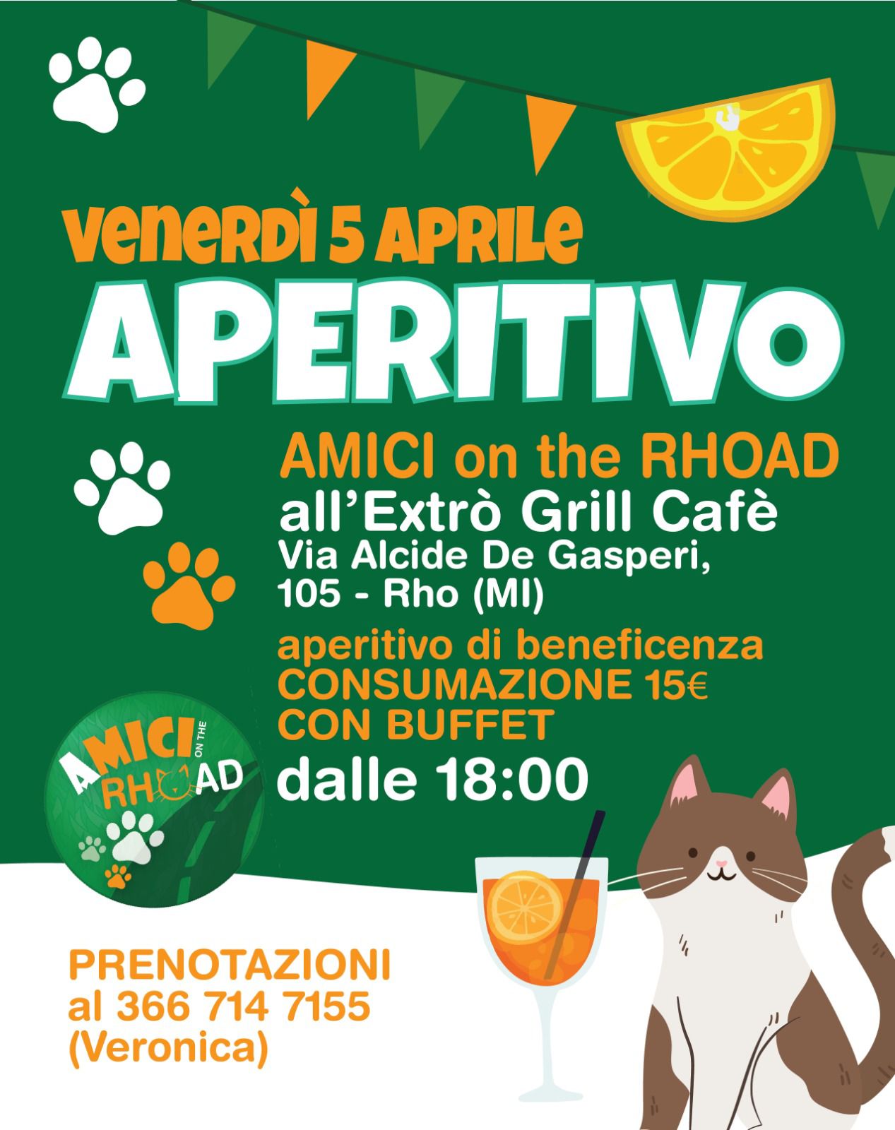 Se sei appassionato di buon cibo, drink deliziosi e vuoi sostenere una causa meravigliosa, non puoi mancare al nostro Aperitivo dell'Associazione Amici on the Rhoad 🌟